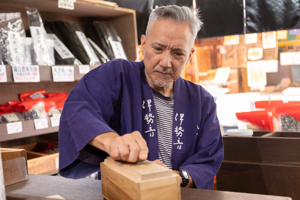 世界各国のミ伊勢音の店頭で鰹節のけずりたてをご賞味ください。これが世界が認めた日本の umami です。創業以来品質本位に拘わり続け 180 余年。世界無形文化遺産「和の食文化」を担っております。